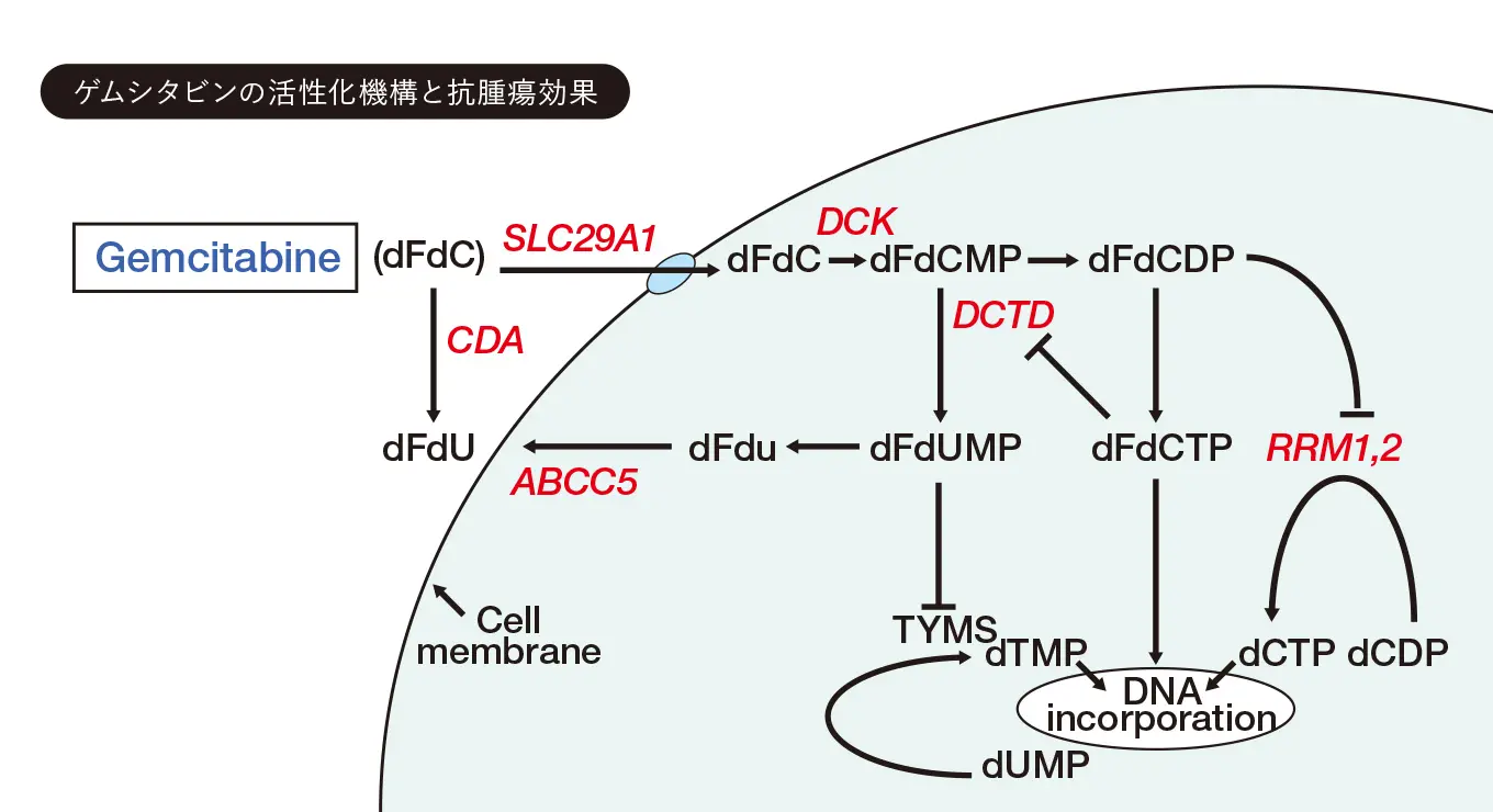 現在、抗がん薬の薬効発現に関わる遺伝学的因子の解明を目指し、研究を進めている。焦点を当てているのが、ゲムシタビンだ。ゲムシタビンは、膵臓がん治療のキードラッグの一つであり、その治療効果の差が予後に大きく影響する。